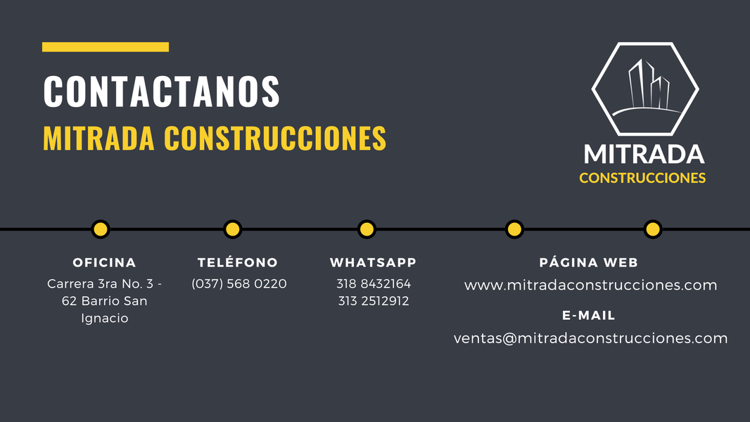9. Formulario de Contacto: El formulario de contacto ubicado en la dirección web www.mitradaconstrucciones.com/contacto/ es uno de los principales medios para recolectar información y datos personales; y con el cual el usuario de la página web podrá contactarse con MITRADA CONSTRUCCIONES S.A.S. Al momento de presionar el botón 'Enviar' y está aceptando la presente política de privacidad y manejo de datos personales.